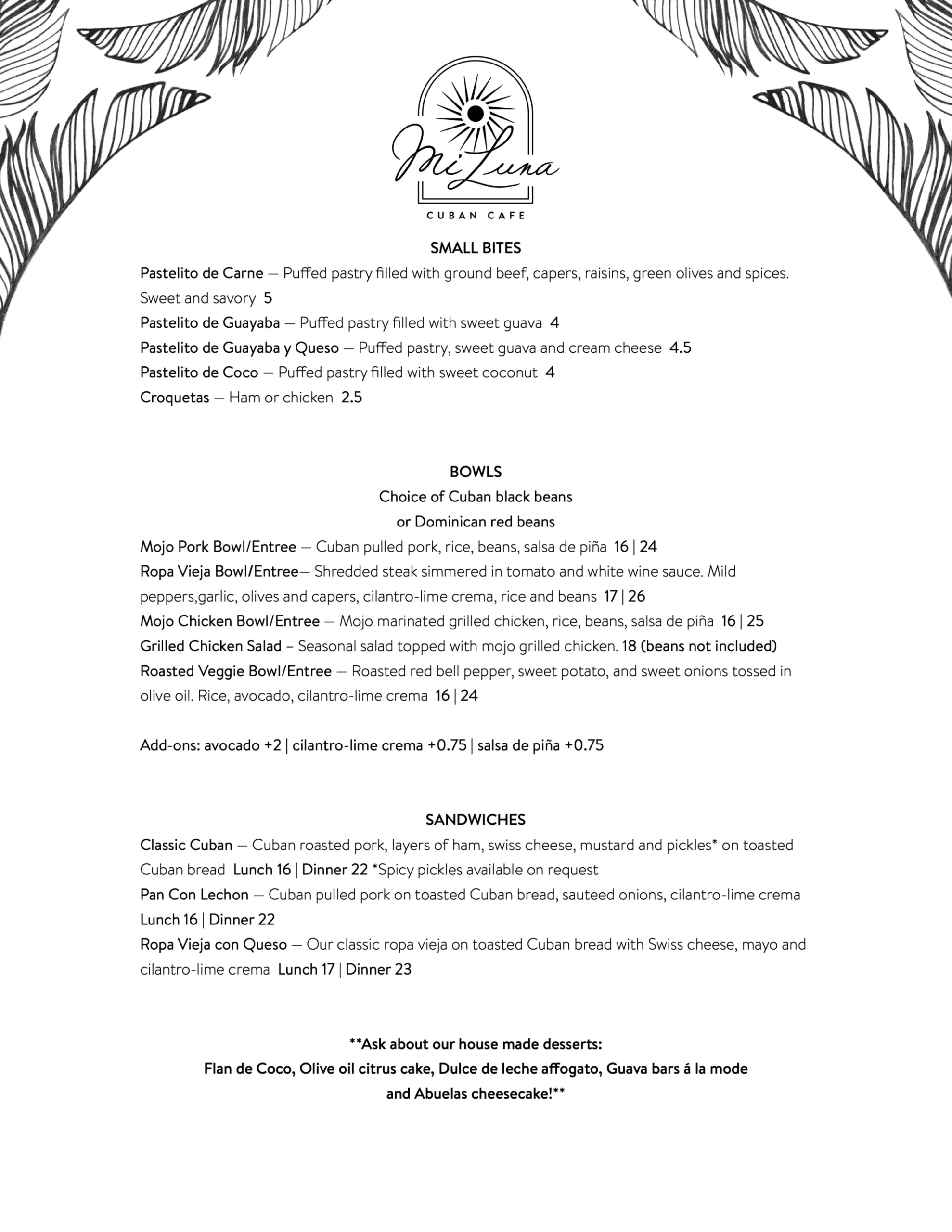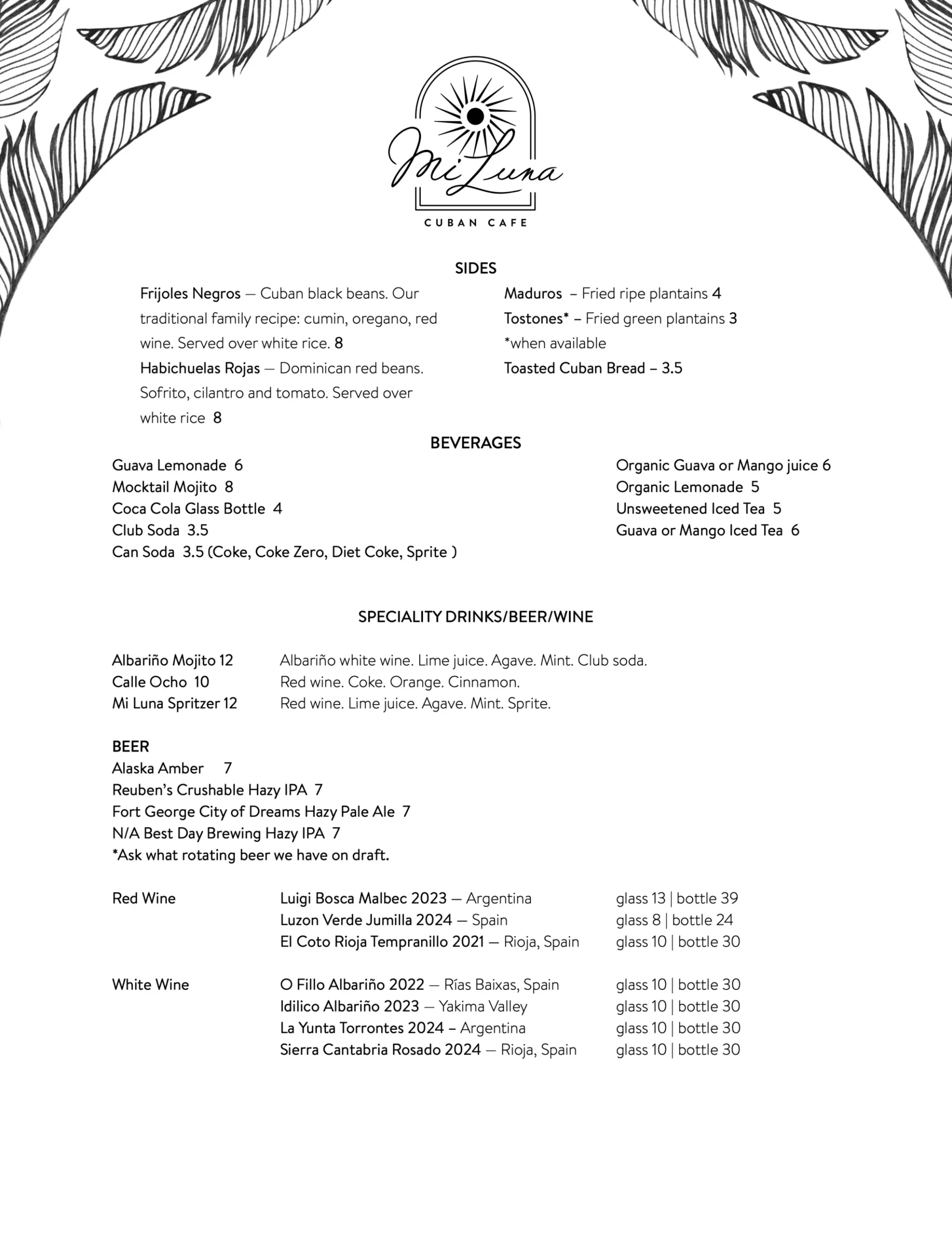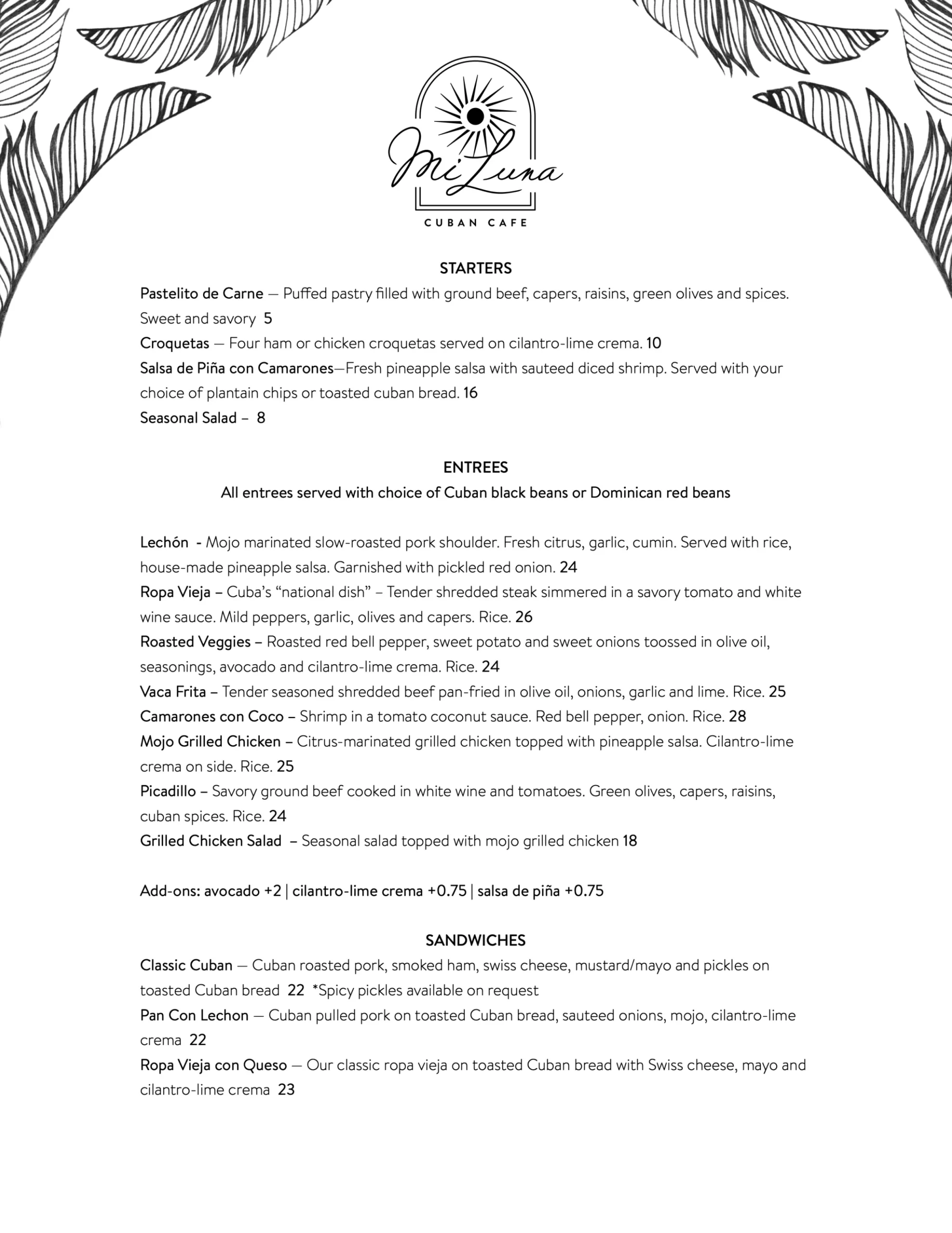 Mi Luna Cuban Cafe is proud to be Olympia, Washington’s first Cuban restaurant. We are family owned and operated, and all of our food is prepared using original family recipes.